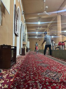 وقد شملت الصيانة أعمال الكهرباء والسباكة بالإضافة إلى تنظيف المفروشات وتعطيرها ونظافة شاملة للمسجد لإزالة الغبار والأتربة وتنظيف السطوح استعدادا لموسم الأمطار، بما يضمن بيئة روحانية نقية ومهيأة لأداء العبادات في أجواء من الطمأنينة والسكينة.